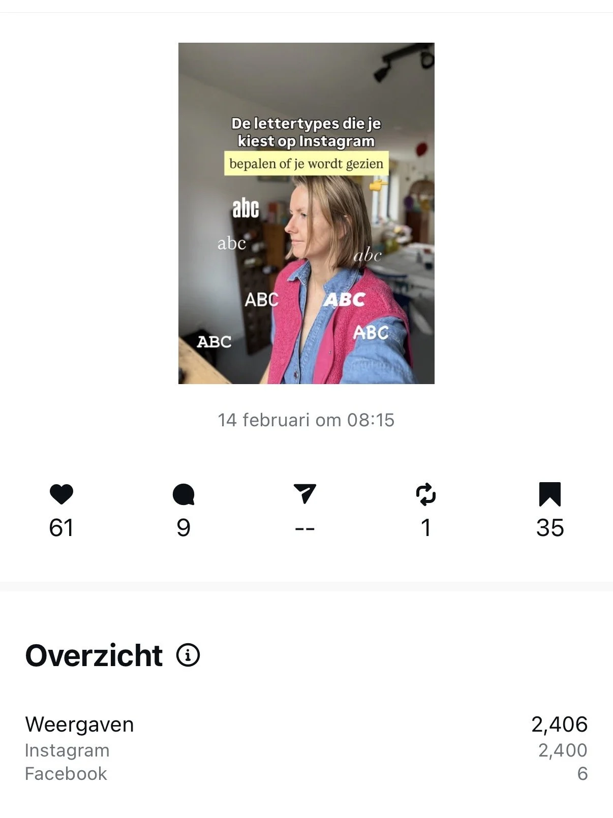 En denk eraan: Voor jou is soms een tip logisch, maar voor je volgers? Toen ik dit namelijk deelde als post op Instagram, had ik deze resultaten na maar 2 uur!