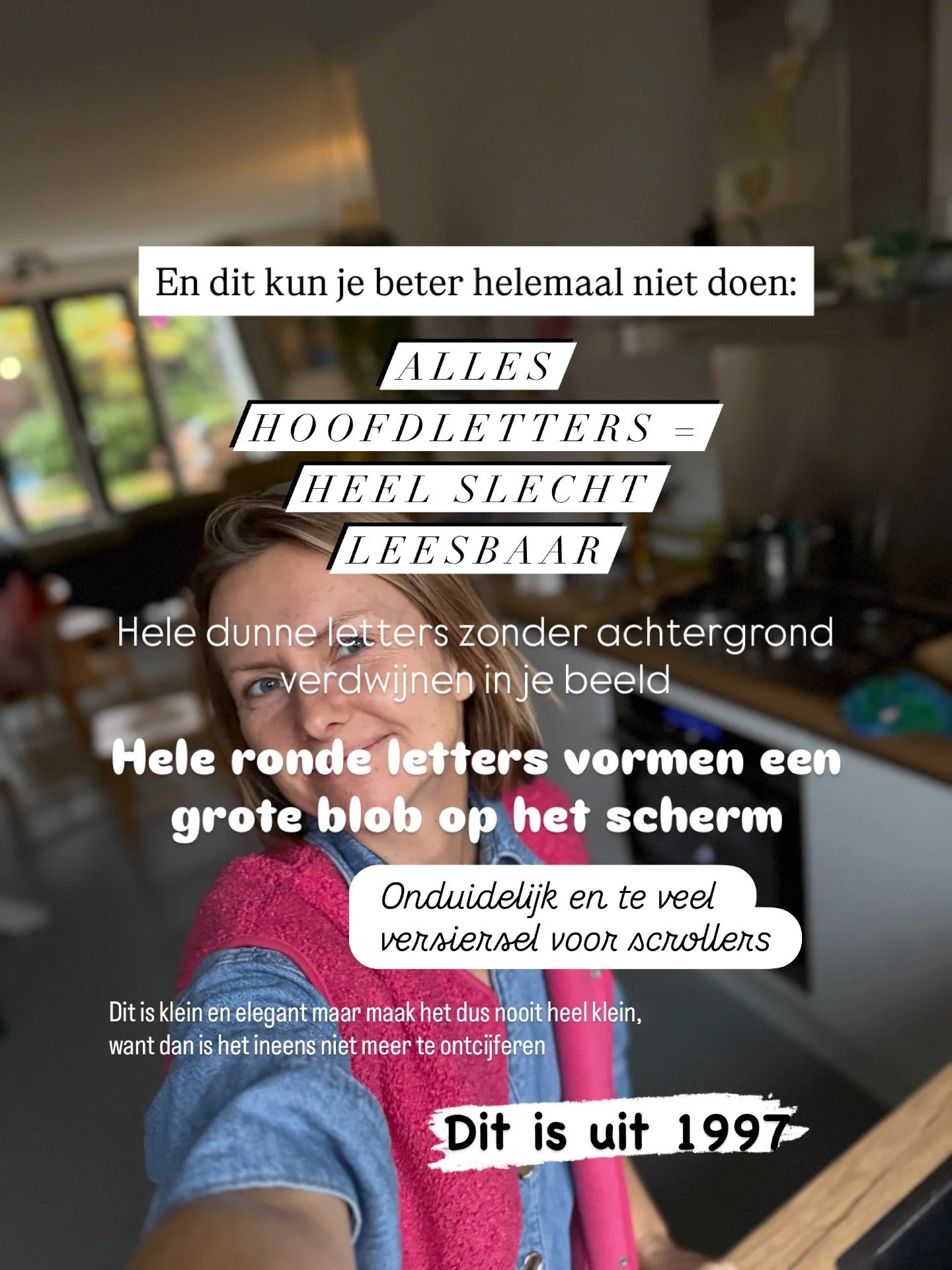 De lettertypes zijn bepalend voor hoe leesbaar je Posts, Stories en Reels zijn. Vaak combineren we hele ingewikkelde speelse dingen. Maar dat werkt je leesbaarheid juist tegen.